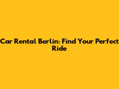 Car Rental Berlin: Find Your Perfect Ride