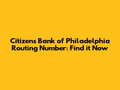 Citizens Bank Of Philadelphia Routing Number: Find It Now