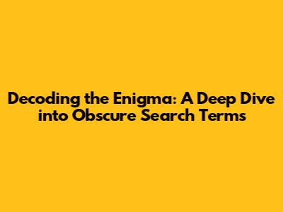 Decoding The Enigma: A Deep Dive Into Obscure Search Terms