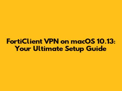Hey everyone, and welcome back to the blog! Today, we're diving deep into something super important for all you Mac users out there who need to connect securely to your company network: FortiClient VPN on macOS 10.13 High Sierra. Yeah, I know, High Sierra might seem a bit old-school to some, but many of us are still rocking it, and getting that VPN connection up and running can sometimes feel like a puzzle. Don't sweat it, though, because I'm here to walk you through everything you need to know, step-by-step. We'll cover why you might need this, the basic setup, and some common hiccups you might run into. So, grab a coffee, settle in, and let's get this VPN sorted!