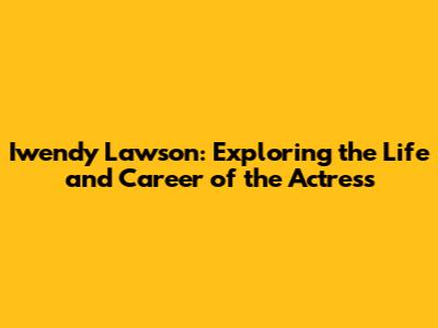 Iwendy Lawson: Exploring The Life And Career Of The Actress