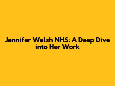Jennifer Welsh NHS: A Deep Dive Into Her Work