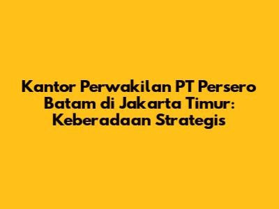 Fungsi dan Peran Kantor Perwakilan PT Persero Batam di Jakarta Timur