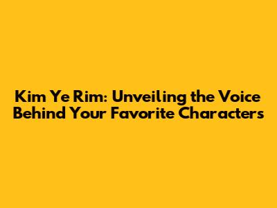 Kim Ye Rim: Unveiling The Voice Behind Your Favorite Characters
