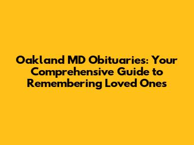 Oakland MD Obituaries: Your Guide To Finding Information