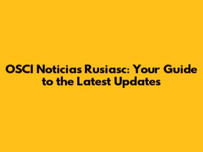 OSCI Noticias Rusiasc: Your Guide To The Latest Updates