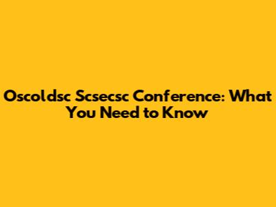Oscoldsc Scsecsc Conference: What You Need To Know