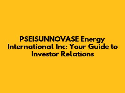 Hey there, future investors and finance enthusiasts! Let's dive deep into the world of PSEISUNNOVASE Energy International Inc and explore the ins and outs of their investor relations. Understanding a company's investor relations is super important, whether you're a seasoned investor or just starting out. It's like having a backstage pass to the company's performance, strategy, and future plans. So, grab your favorite beverage, get comfy, and let's break down everything you need to know about PSEISUNNOVASE's investor relations.