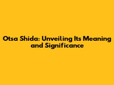 Unraveling The Mystery Of Otsa Shida: A Deep Dive
