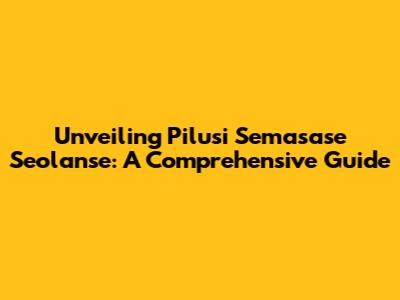 Unveiling Pilusi Semasase Seolanse: A Comprehensive Guide